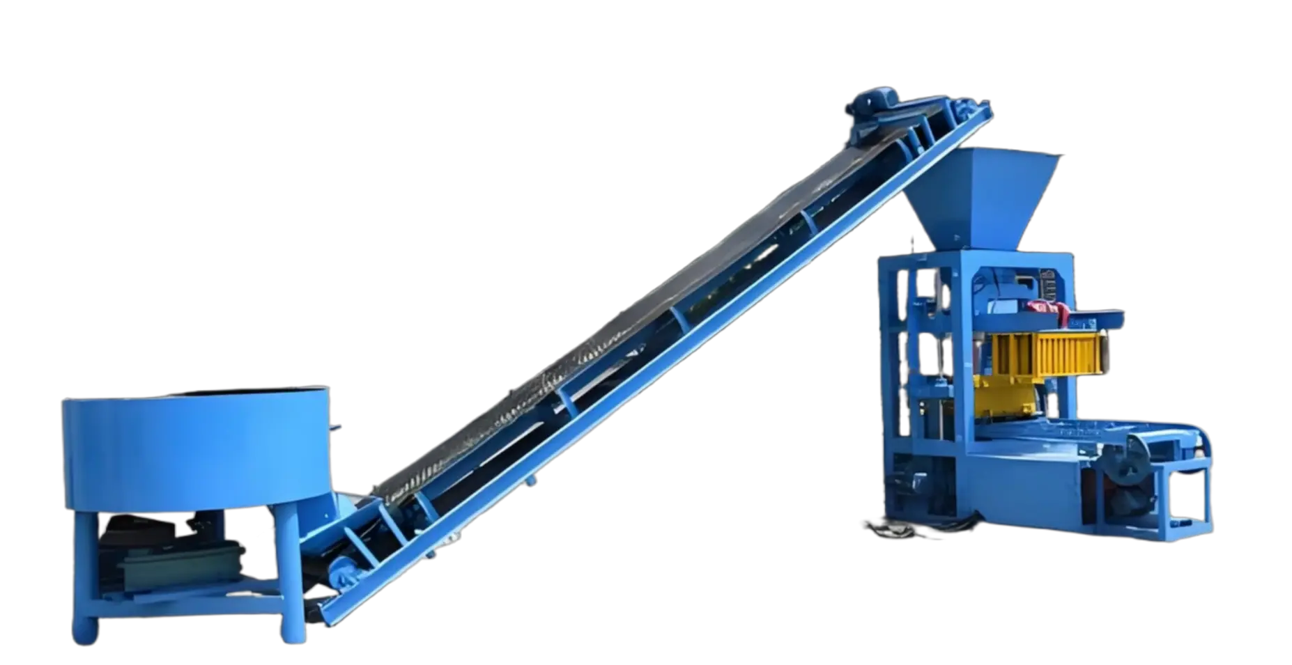 2. Belt Conveyor: Transports the mixed wet concrete from the mixer to the machine’s hopper.