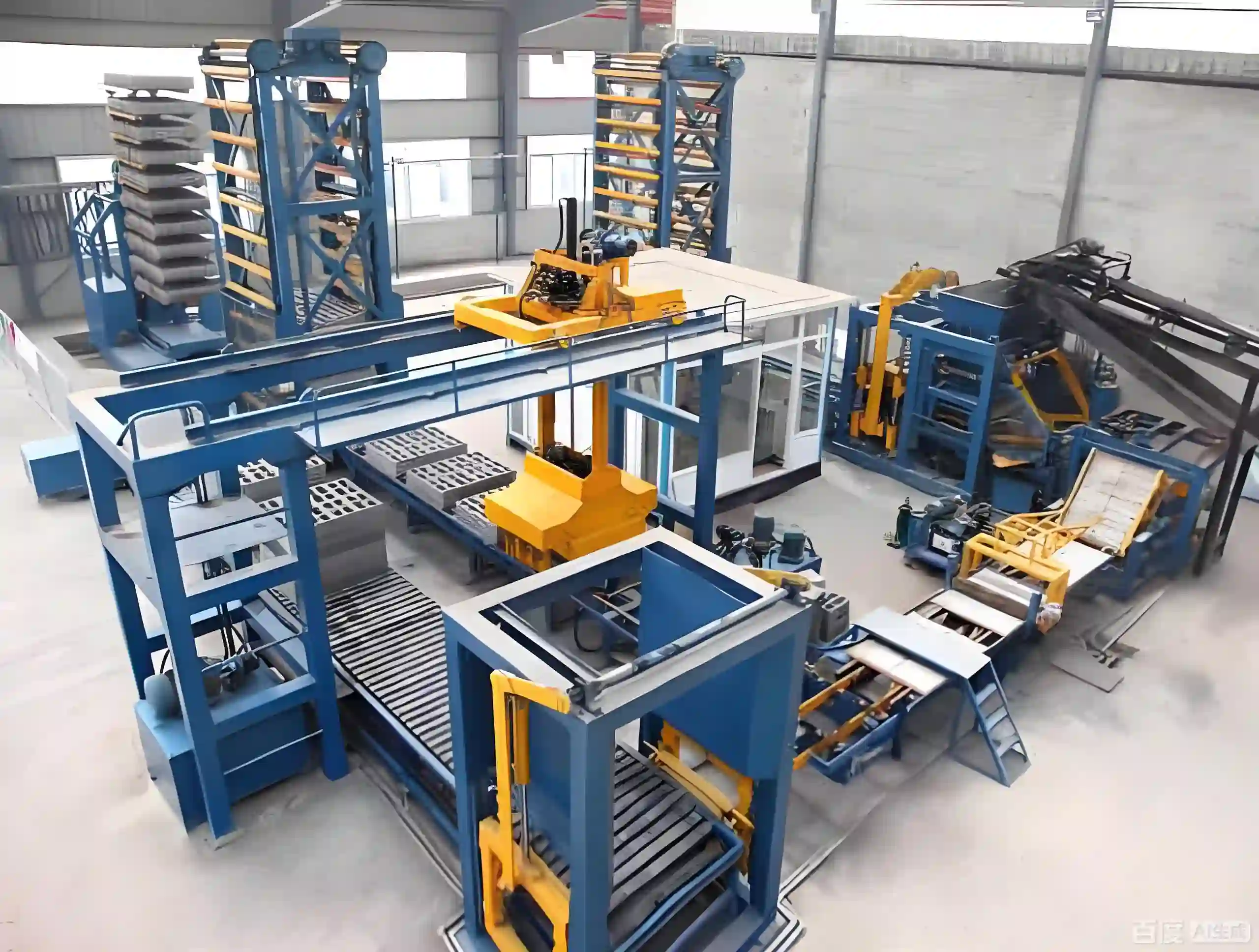 4. Automatic Stacker (Cuber): Picks up the loaded pallets of wet bricks and stacks them for transport to the curing area.