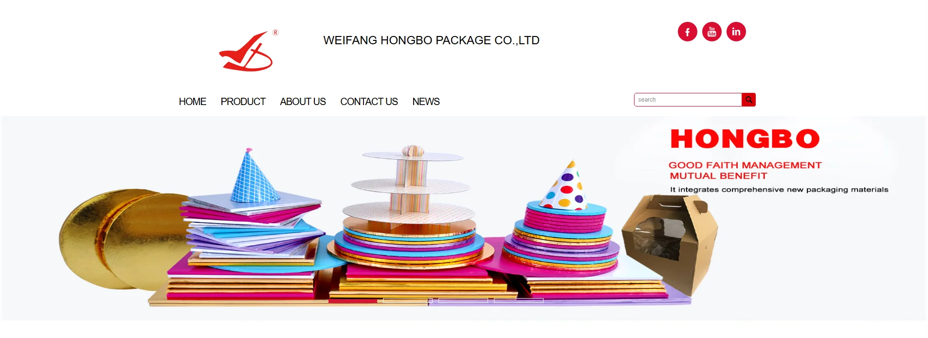 Main Products: A professional manufacturer specializing in cake packaging. Its primary products include corrugated cardboard and MDF (Medium-Density Fiberboard) cake boards. It holds international food safety certifications such as FDA and LFGB, offers deep customization on dimensions, shapes, and thicknesses, and operates automated production lines.
