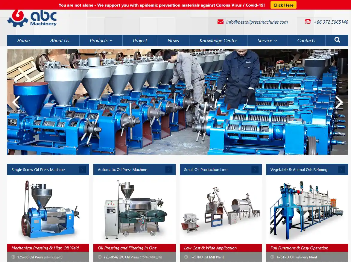 Anyang Best Complete Machinery Engineering Co., Ltd (ABC Machinery) is a leading Chinese manufacturer and supplier of oil press machines. Merged in 2014 from GEMCO and KMEC, it leverages the combined strengths of both entities to excel in designing and manufacturing high-quality, efficient screw oil press machinery, backed by an experienced team of engineers and fabricators.