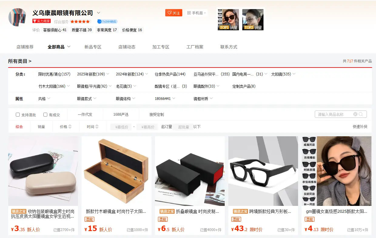 Originating from Wenxiang Glasses Store established in 2008, it was officially registered in 2013 and has developed into an integrated enterprise integrating R&D, design, production and sales. It mainly engages in sunglasses, optical glasses and accessories, forming a product system focusing on mid-to-high-end products and featuring bamboo-wooden glasses. With an annual sales volume of 3 million pairs and an annual turnover of 8-12 million US dollars, its products are mainly sold to Western Europe and North America. It has won customer recognition for its advantages of “complete categories, stable quality and timely delivery”, and expands domestic and overseas businesses through Alibaba platforms, self-built websites and international exhibitions.